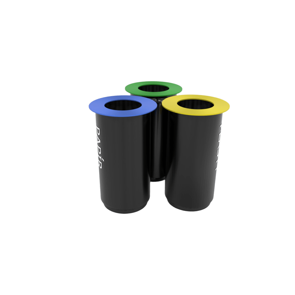 Řada odpadkových košů na tříděný odpad. Účelnost a vysoká odolnost koše proti vandalismu a korozi...
