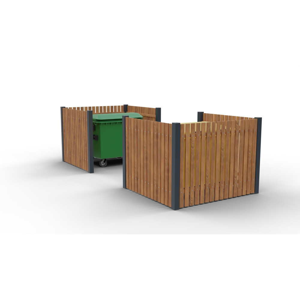 Modulární hrazení Eko III je navrženo pro umístění dvou standardních kontejnerů a svým čistým designem se hodí k domům, firmám i do veřejných prostor. Ocelová konstrukce je doplněna dřevěnými prkny, která zvyšují estetiku a odolnost sestavy.
