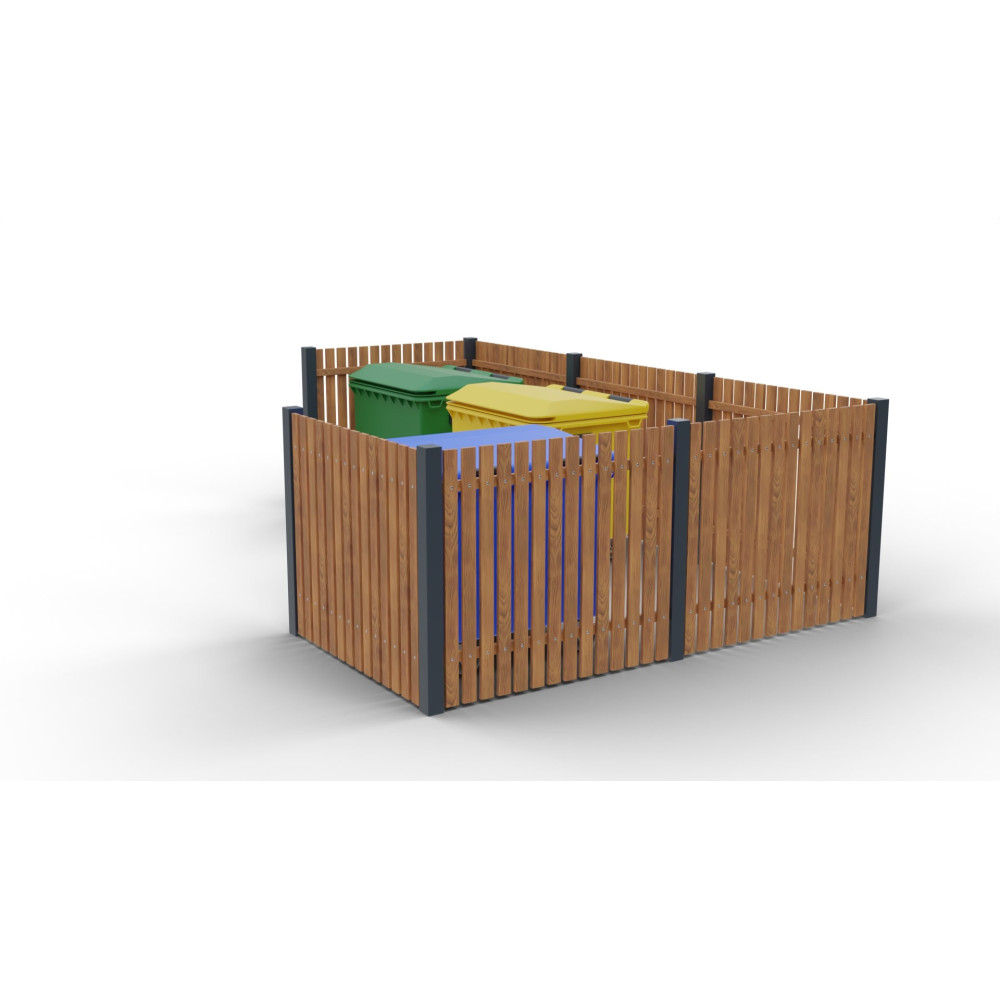 Modulární hrazení Eko III nabízí elegantní zakrytí pro 2 odpadové kontejnery s ocelovou...