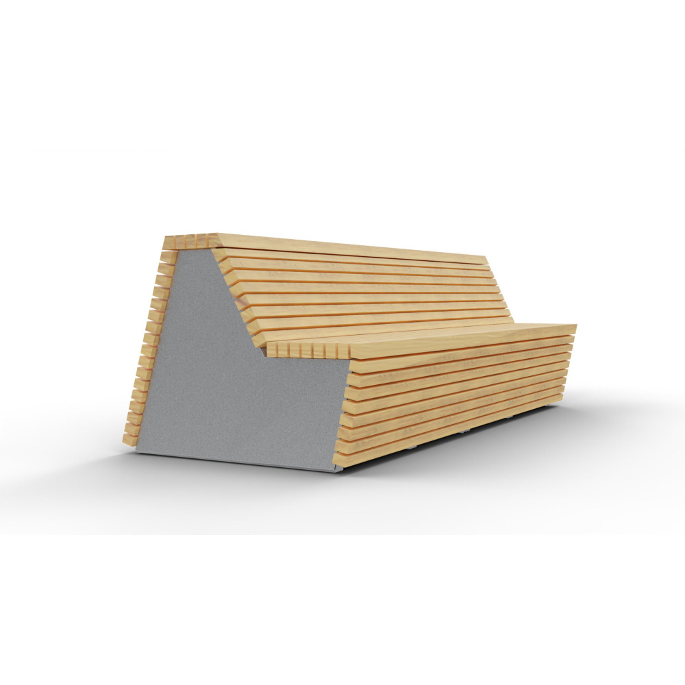 Lavička Maximus je moderní venkovní lavička s výrazným architektonickým designem. Masivní dřevěné lamely a pevná ocelová konstrukce, vysoký komfort sezení, možnost volby barev a kotvení šrouby.