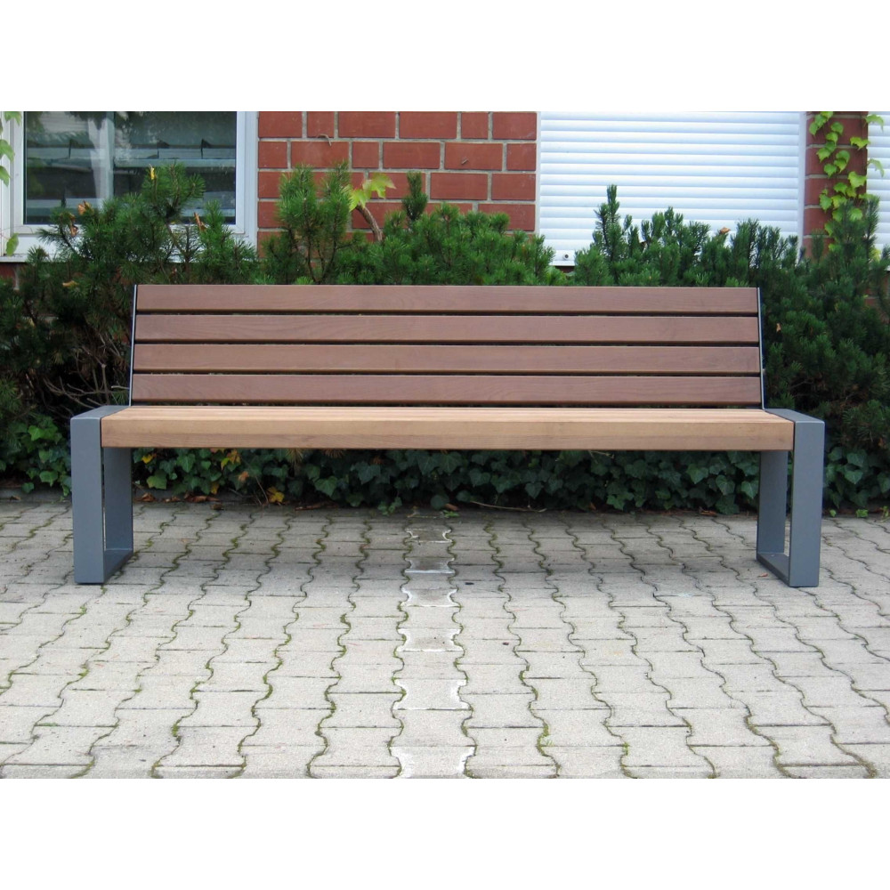 Lavička s opěradlem Harmony kombinuje pevnou kovovou konstrukci a dřevěné latě pro pohodlné...