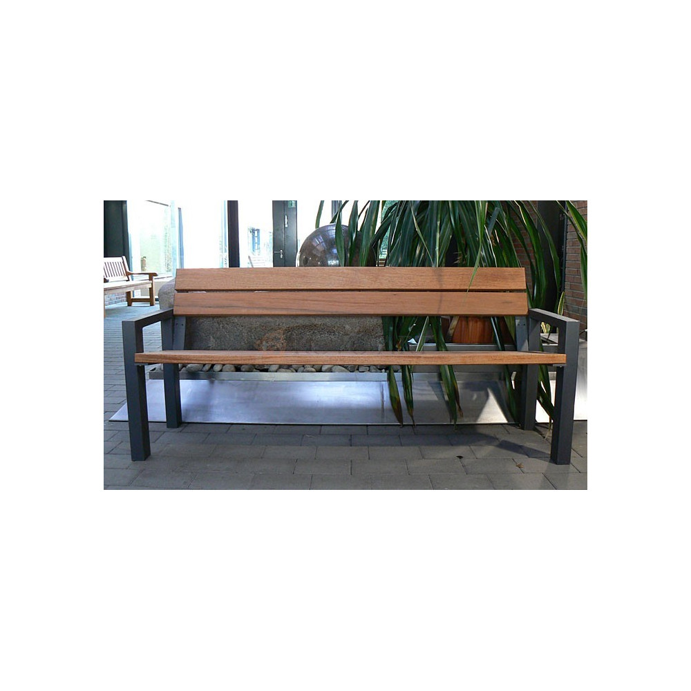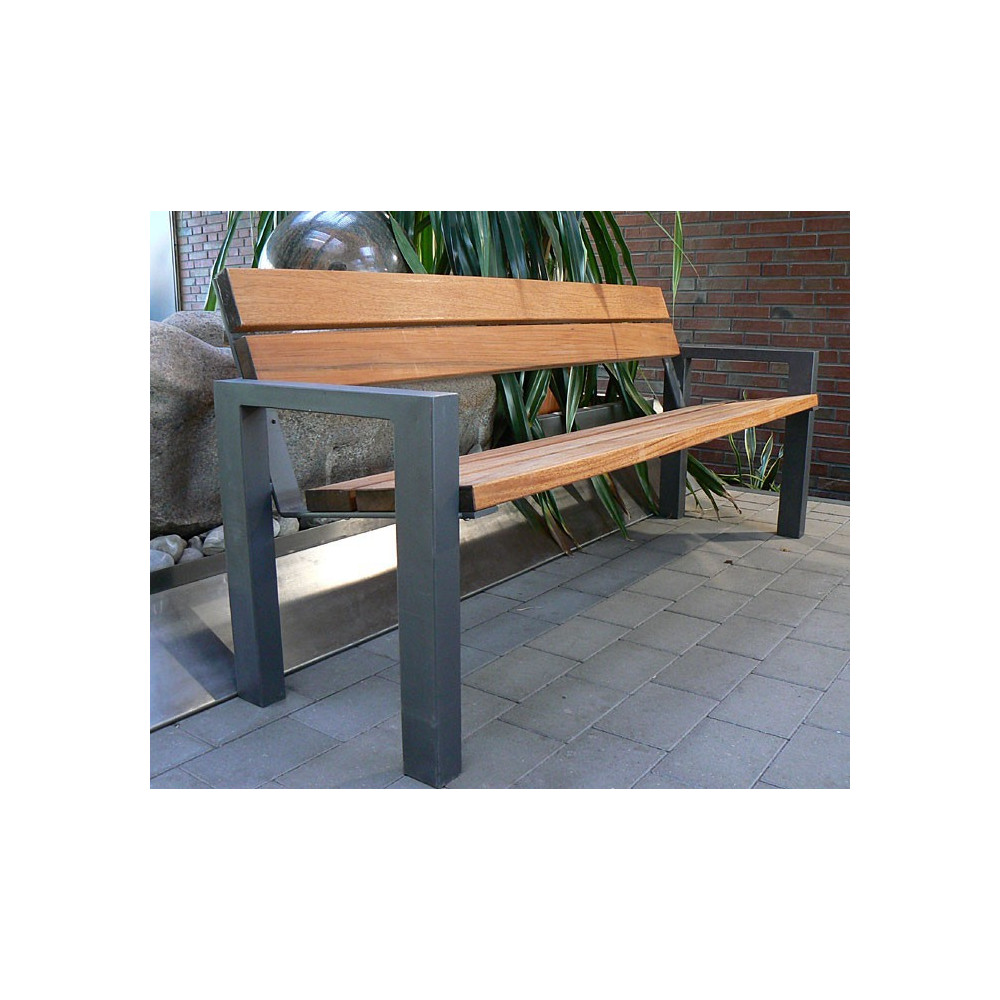 Parková lavička Alta s robustním ocelovým rámem a pohodlným dřevěným sedákem a opěradlem. Moderní...