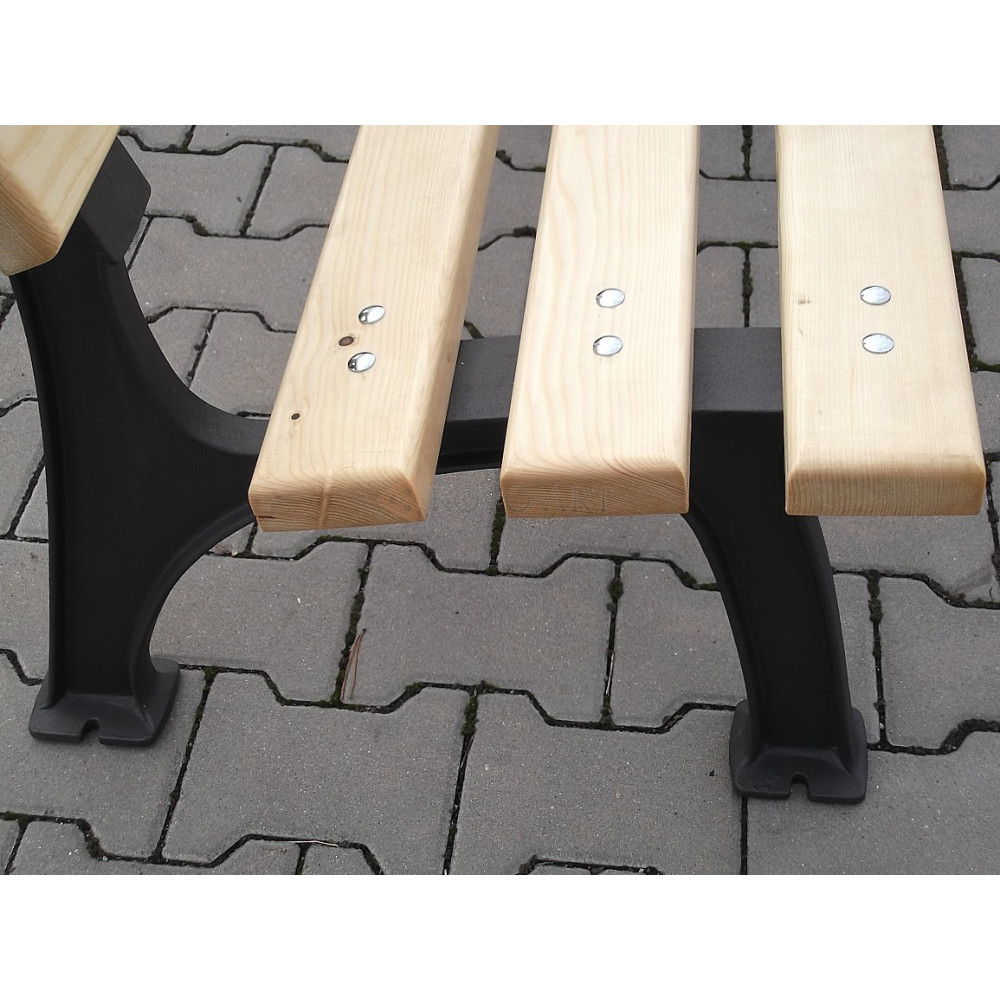 - Prkna sedáku a opěradla lavičky jsou z dřeva
