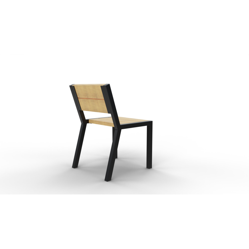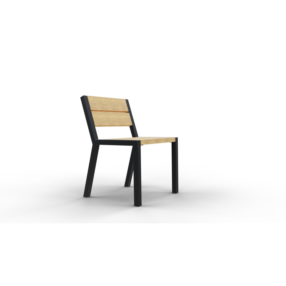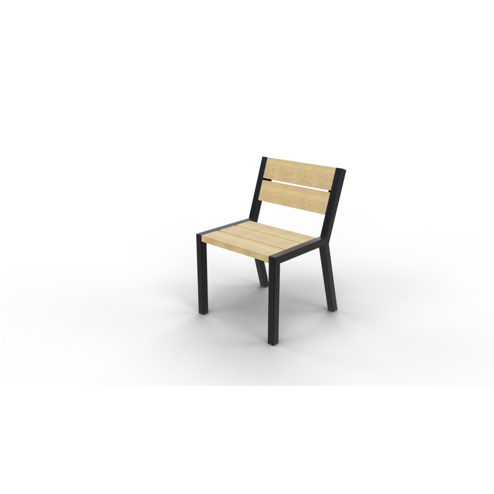 Židle Harmony je navržena pro venkovní posezení v komerčních i veřejných prostorách. Kombinuje pevnou kovovou konstrukci a dřevěné latě, díky čemuž působí lehce, ale zároveň je velmi stabilní a odolná.