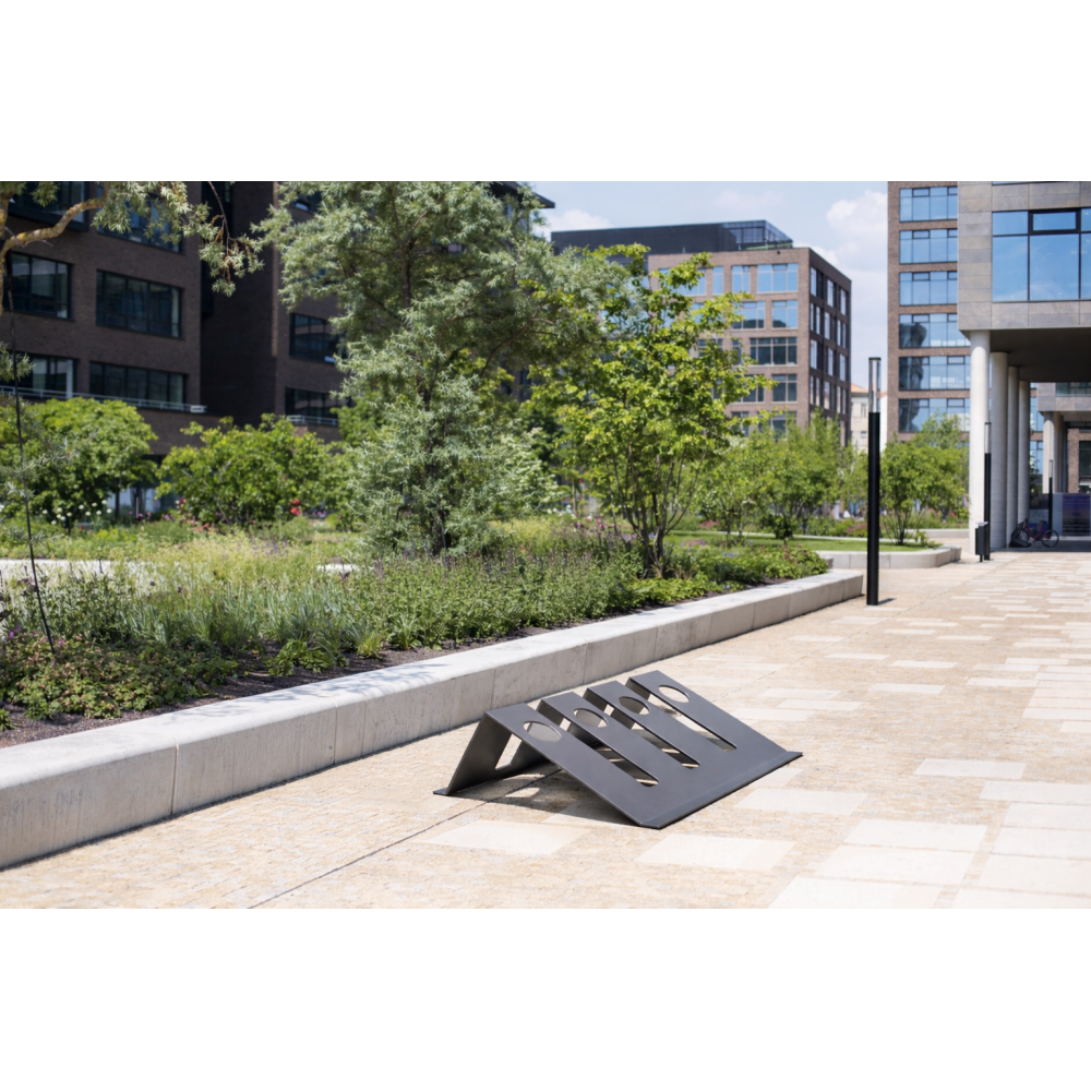 Designový jednostranný stojan na kola BIKE modulární systém pro parkování kol. Konstrukce stojanu je navržena pro pevné a stabilní stání kol. Vyráběno standardně pro 3 stání kol . Jiné počty stání na možné na vyžádání. Stojan je vybaven okem na protažení zámku kola pro jeho uzamčení.