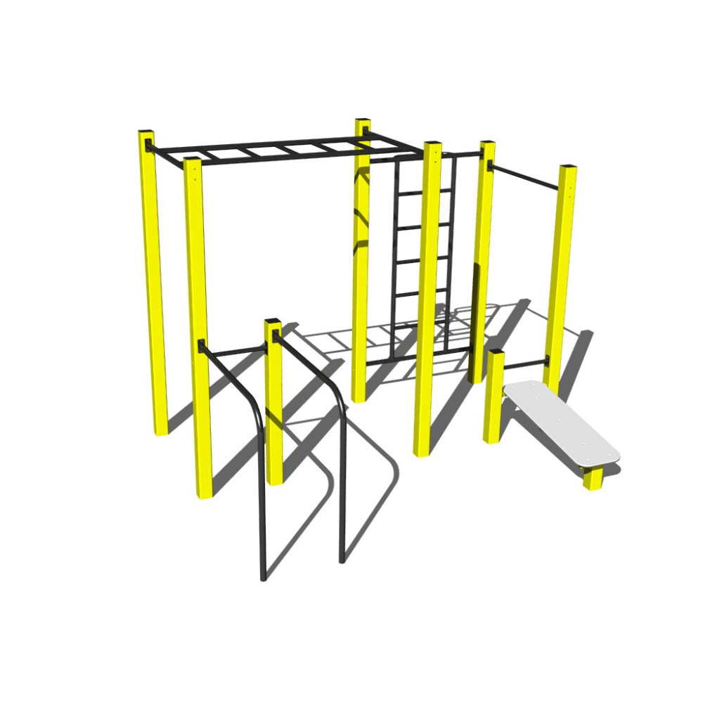Nosné konstrukce workoutových prvků a sestav jsou vyrobeny z konstrukční oceli, která je proti korozi chráněna povrchovou úpravou zinkováním, čímž se docílí velmi výrazného prodloužení životnosti herního prvku a vypalovanou barvou KOMAXIT dle odstínu RAL.